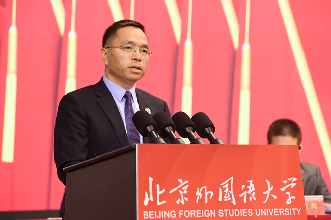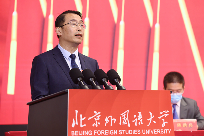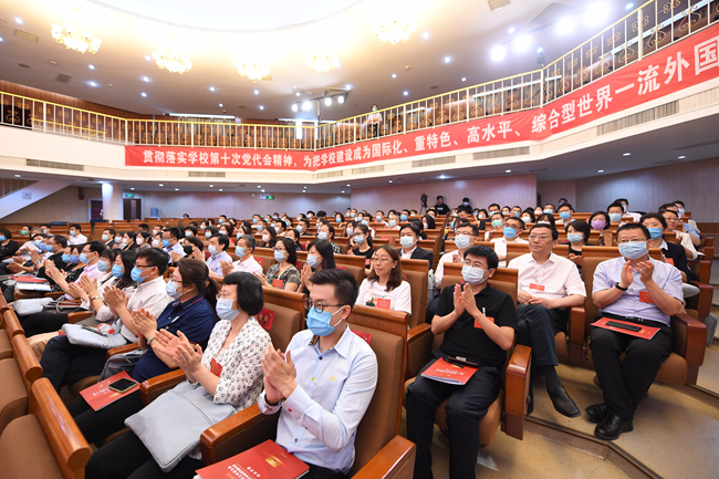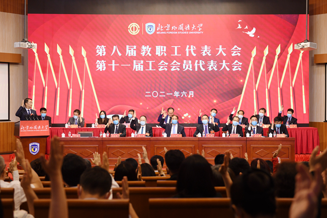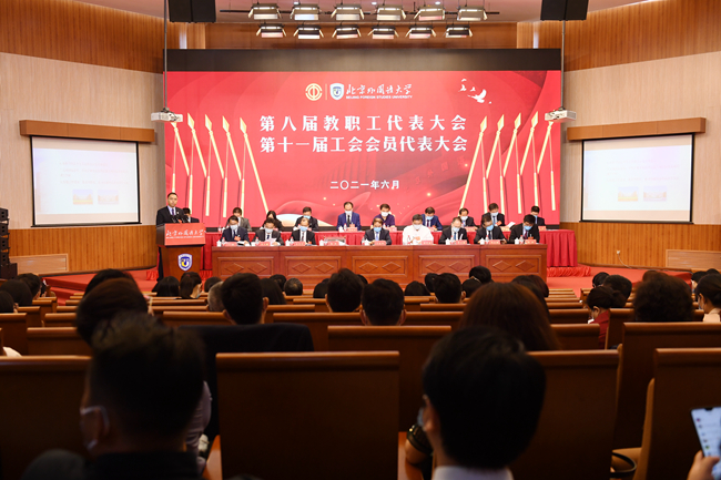 杨丹以“团结和依靠全校教职工,推动世界一流外国语大学建设行稳致远”为主题,向大会作学校工作报告。报告从立德树人成效显著、学科建设统筹推进、教师队伍稳步发展、科研产出持续增长、社会服务能力提升、国际化程度不断提升、办学条件明显改善、党的建设纵深推进、疫情防控成效显著等九个方面总结了“十三五”以来学校建设发展取得的一系列突出成绩,全面分析了当前面临的形势和任务,提出了实施三大战略,走好可持续发展之路;聚焦三大领域,走好融合发展之路;健全三大保障体系,走好共创共享之路的发展规划。