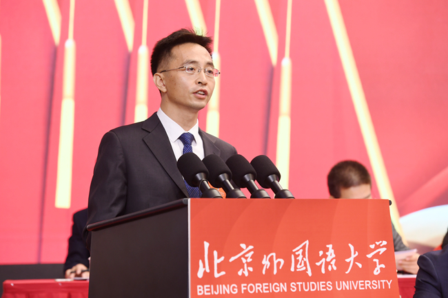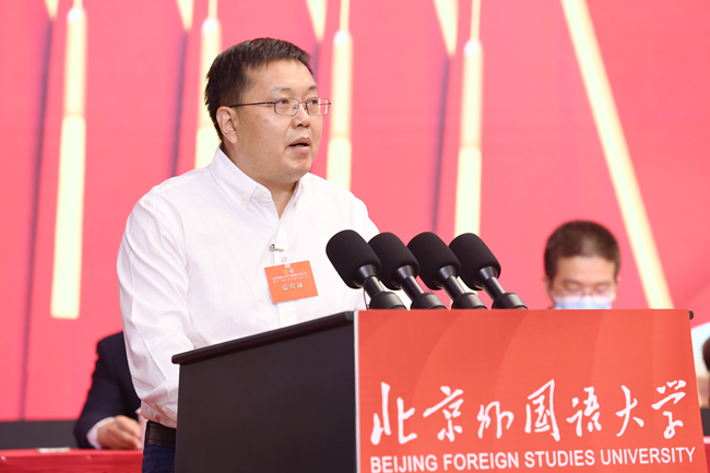 开幕式上,王定华、杨丹、韩世春、张磊为北外第五届青年教师教学基本功大赛获奖代表颁奖。