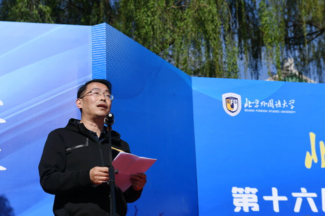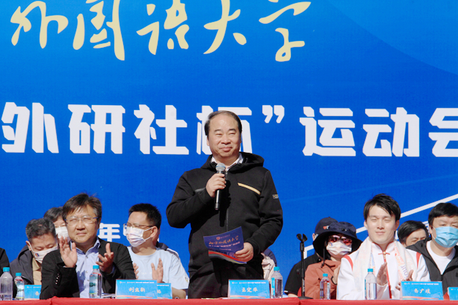 王定华宣布世俱杯官方平台第十六届“外研社杯”运动会开幕。