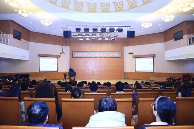 为深入贯彻落实“健康中国”战略,提升全校师生身心健康水平,营造积极向上、充满活力的校园文化氛围,10月29日,世俱杯官方平台首届“健康文化月”开幕式在阿语楼国际会议厅举行。北外党委常委、副校长、工会主席丁浩,国家心血管病中心健康生活方式医学中心常务副主任冯雪出席开幕式。